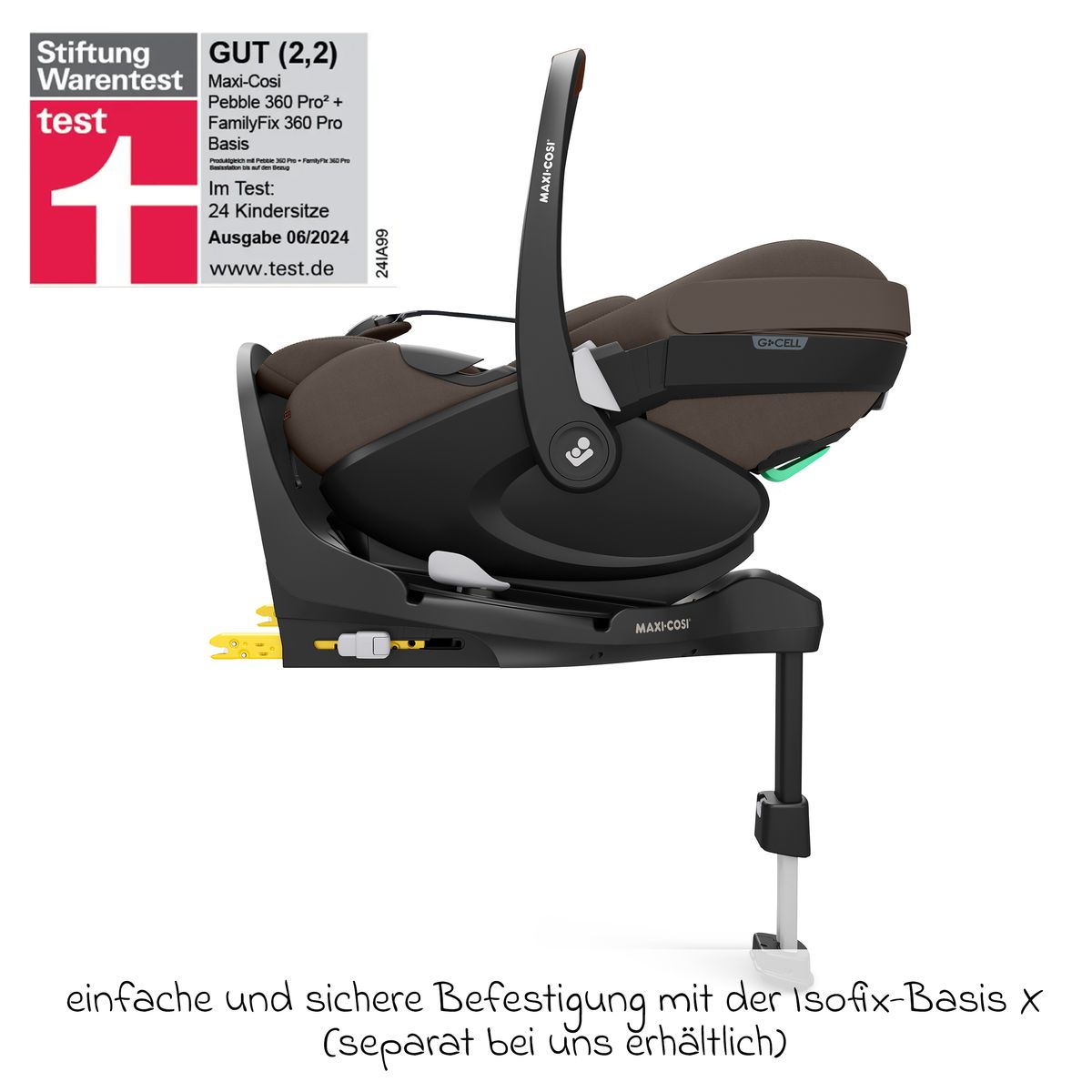 Un altro punto a favore: il Maxi-Cosi Pebble 360 Pro² non solo convince per la sua sicurezza - confermata dalla valutazione GOOD (2.2) di Stiftung Warentest - ma anche per i dettagli ben studiati come gli elementi di ventilazione ClimaFlow e i materiali traspiranti che garantiscono un clima piacevole. Il poggiatesta regolabile in modo ergonomico e l'inserto rimovibile per neonati garantiscono una postura sana e un sostegno ottimale per il tuo bambino.