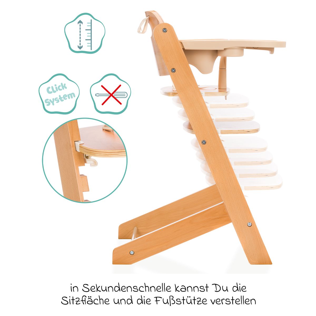 Il seggiolone Pia non è solo pratico, ma anche incredibilmente robusto. Il legno di faggio assicura una struttura stabile e duratura che servirà te e il tuo bambino per molti anni. La sedia colpisce anche per il suo design senza tempo, che si inserisce armoniosamente in ogni casa e si combina perfettamente con l'arredamento.