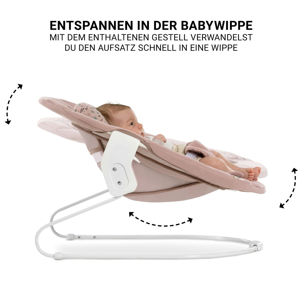 Utilizzabile come sdraietta: il tuo piccolo preferisce un po' di varietà? Allora basta agganciare l'aggancio per il bambino al telaio flessibile a dondolo. I movimenti lo fanno oscillare avanti e indietro e cullano dolcemente il tuo bambino per farlo addormentare.