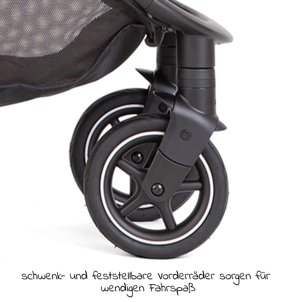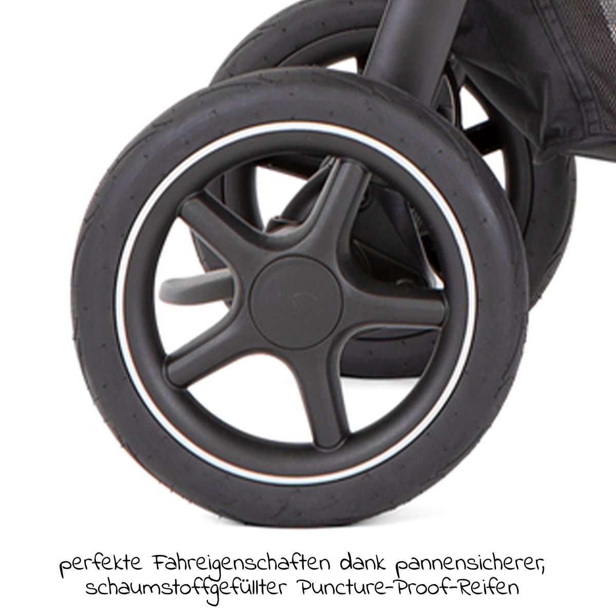I cerchioni sono dotati di catarifrangenti e garantiscono una maggiore sicurezza al buio. Il Mytrax Pro è inoltre dotato di un maniglione regolabile in altezza e di applicazioni in pelle. Pratico: con la navicella Ramble puoi utilizzare il passeggino fin dalla nascita.