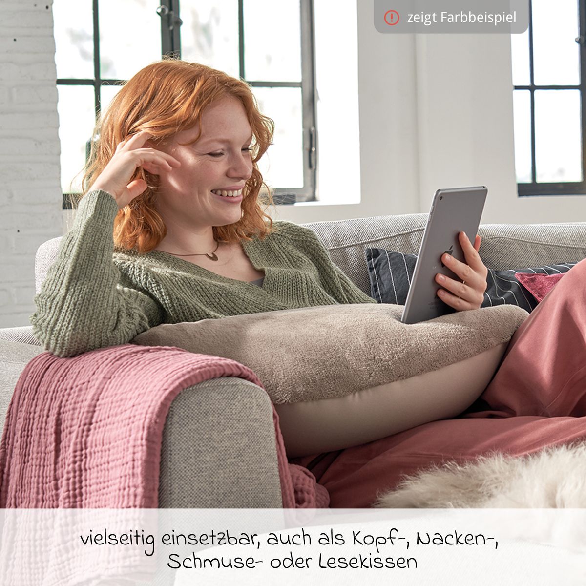 - molto versatile: anche come cuscino per testa e collo o come cuscino da coccola e lettura