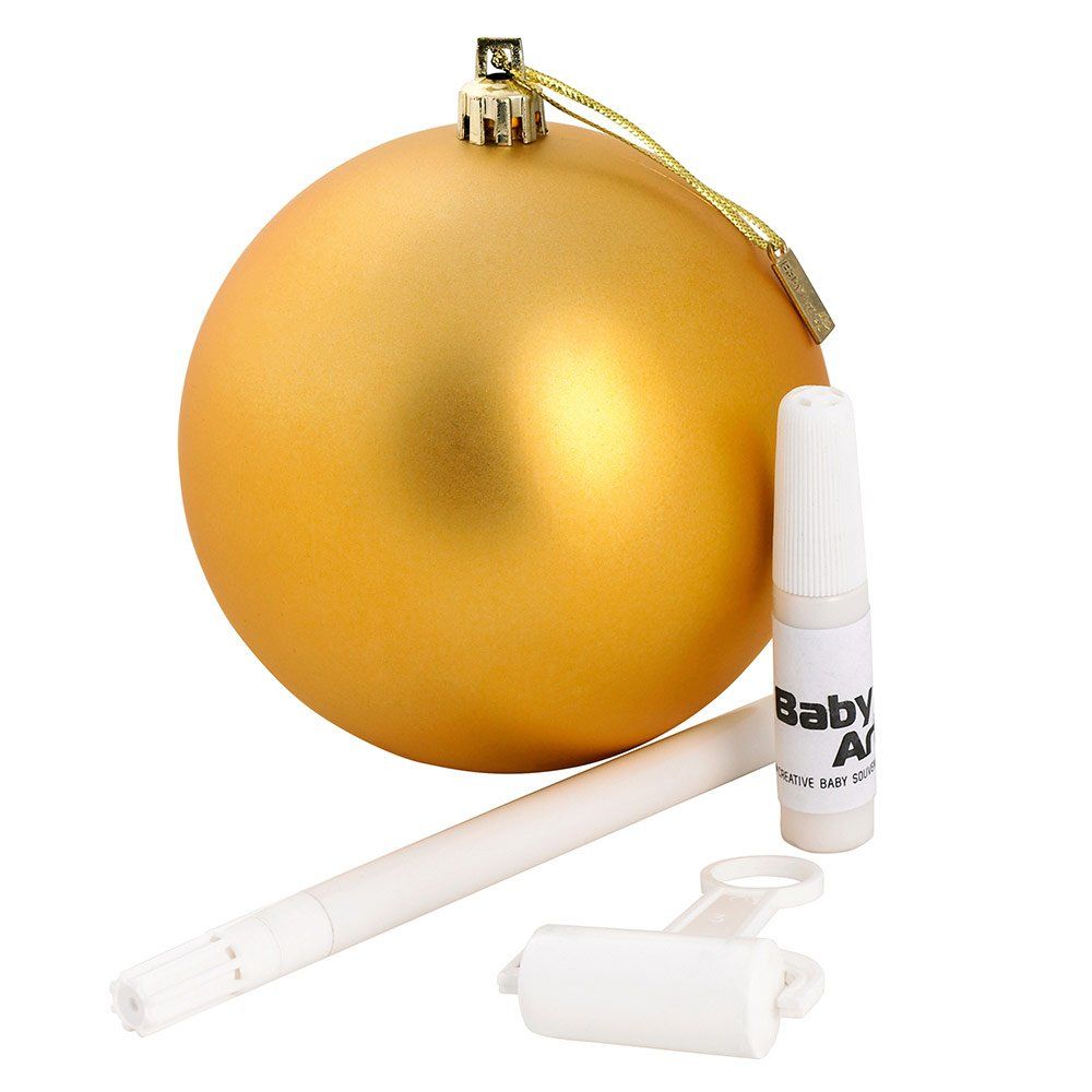 Diese Christbaumkugel für Abdruck & Beschriftung in der Farbe Matt Gold von Babyart ist ein tolles Mitbringsel und Geschenk in der Advents- und Weihnachtszeit! Die Kugel ist aus stabilem, unzerbrechlichem Kunststoff gefertigt und kann mit einem persönlichen Abdruck von Hand oder Fuß Ihres Babys, sowie dem Namen oder einer Botschaft individuell gestaltet werden. Die Handhabung ist dabei einfach: Es ist kein Trocknen im Ofen oder zusätzliches Material notwendig. Alles was Sie benötigen; ist im Set enthalten. Neben der Kugel ist ein Abroller, ein Stift und eine Halterung im Lieferumfang enthalten.