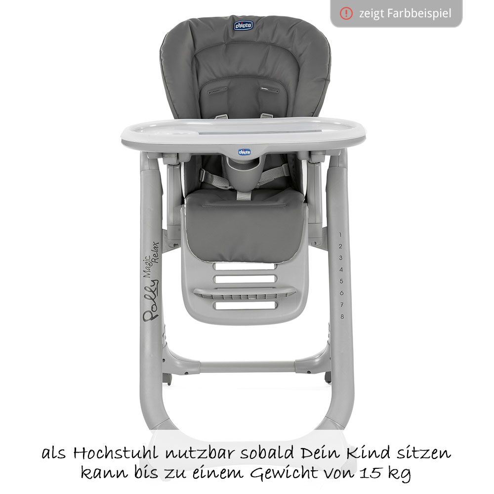 - Pflegehinweise: Essbrett und Bezug abwaschbar mit einem feuchten Tuch, Sitzverkleinerer handwaschbar bei niedrigen Temperaturen