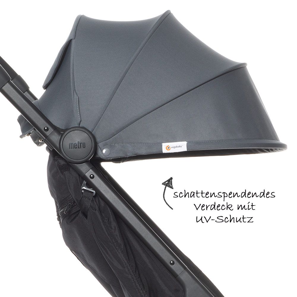 Bietet Ergobaby-Komfort auf Rädern: Der Metro Compact City Stroller – Grey von ist klein, leicht und kompakt und bietet dabei höchsten Komfort für Dein Kind und Dich. Mit nur 6,3 kg Eigengewicht und seinen kompakten Maßen macht das Gefährt auch als Reisebuggy eine gute Figur. Die schmalen und schwenkbaren PU-Räder sorgen für die nötige Wendigkeit – ideal für schmale Gassen und enge Supermarktgänge. Dank der stoßabsorbierenden Hinterrad-Federung kannst Du auch Hindernisse wie Bordsteinkanten problemlos meistern.