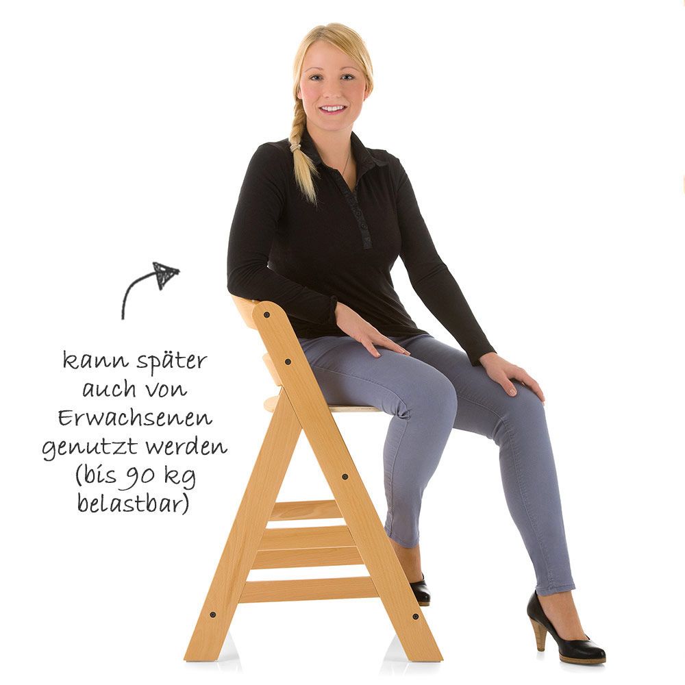 Im Treppenhochstuhl Gamma Plus ist Ihr Kind zu jeder Mahlzeit gut aufgehoben! Er wächst gemeinsam mit Ihrem Kind und begleitet Sie so über viele Jahre. Durch seine hohe Belastbarkeit von 90 kg können sogar Erwachsene auf ihm Platz nehmen.