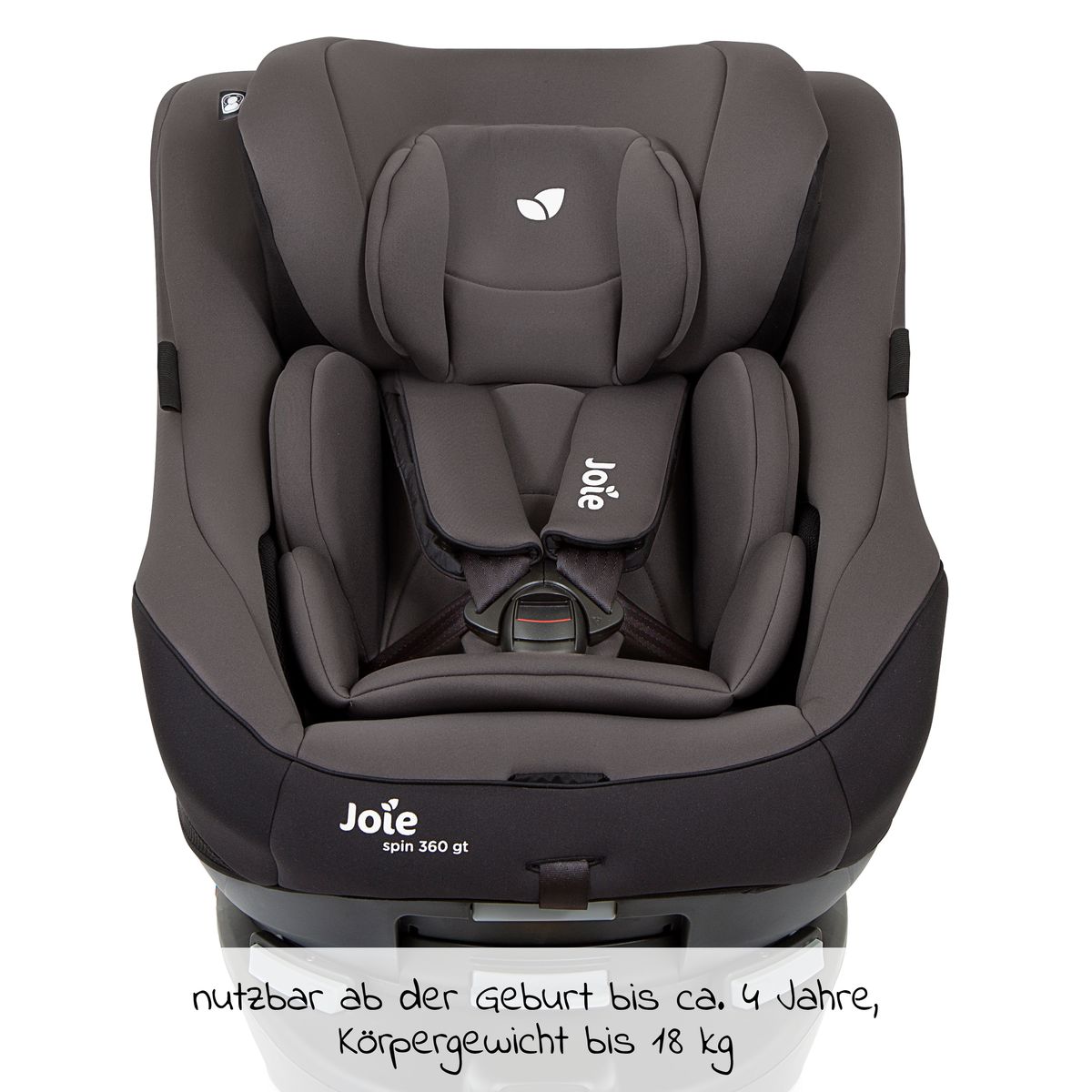 Mit dem Reboarder-Kindersitz Spin 360 GT - Ember von Joie ist Dein Baby dank Liegefunktion sicher und bequem entgegen der Fahrtrichtung unterwegs. Ab einem Körpergewicht von 9 kg kannst Du den Sitz auch vorwärtsgerichtet anbringen. Die Befestigung erfolgt mit Hilfe der mitgelieferten Isofix-Basis mit feststellbarem Standfuß. So ist der Sitz sicher im Auto fixiert und kann mit einem Handgriff mehrfach verstellt werden. Größere Kinder genießen im Sitzen den Blick aus dem Fenster. Der Reboarder ist höhenverstellbar und - als besonderes Feature - um 360° drehbar. So kann Dein Kind ganz einfach ein- und aussteigen und auch der Wechsel der Fahrtrichtung ist ein Kinderspiel.