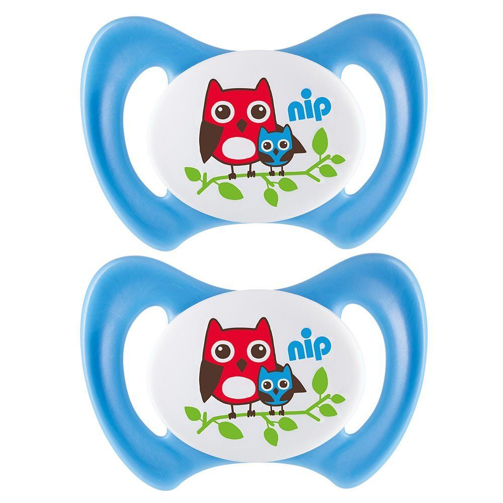Die beiden Dentalschnuller Miss Denti Größe 1 Eule Blau von Nip wurden nach neuesten Erkenntnissen in der Zahnmedizin entwickelt. Sie wirken selbst bei Babys mit einem hohen Saugbedürfnis Zahn- und Kieferfehlstellungen entgegen und sehen in der leuchtenden Farbe Blau mit süßem Eulen- Motiv einfach toll aus.