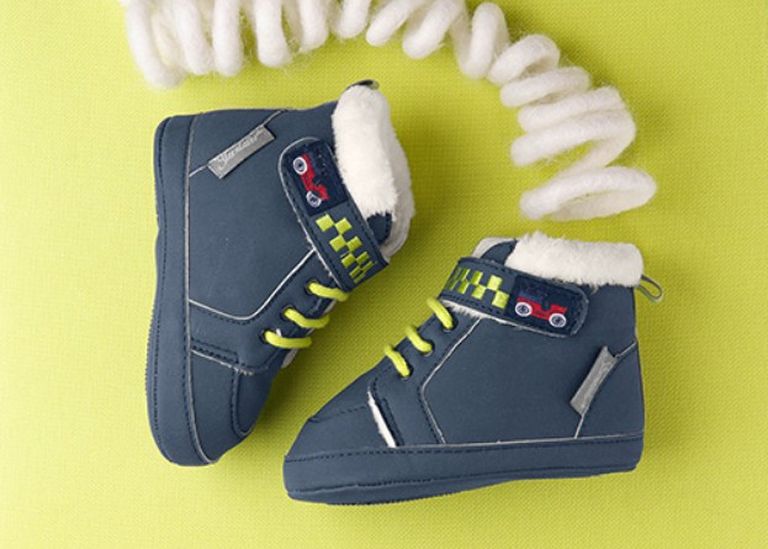 Speziell zum Laufenlernen sind Babyschuhe nicht notwendig. Feste Schuhe sind dabei sogar eher hinderlich, denn Gleichgewicht und Koordination müssen erst geübt, die zum Laufen notwendigen Muskeln noch gestärkt werden. Am besten lernen Babys barfuß oder mit rutschhemmenden Socken das Laufen. Wenn Sie aber gerne die Fußsohlen Ihres Babys schützen wollen, um z.B. draußen auf der Straße zu üben, empfehlen sich Lauflernschuhe, deren Sohle sich komplett biegen lässt. Wenn Ihr Kind dann sicher läuft geht es an Babyschuhe mit fester Sohle und hohem Schaft, die Fuß und Knöchel schützen.