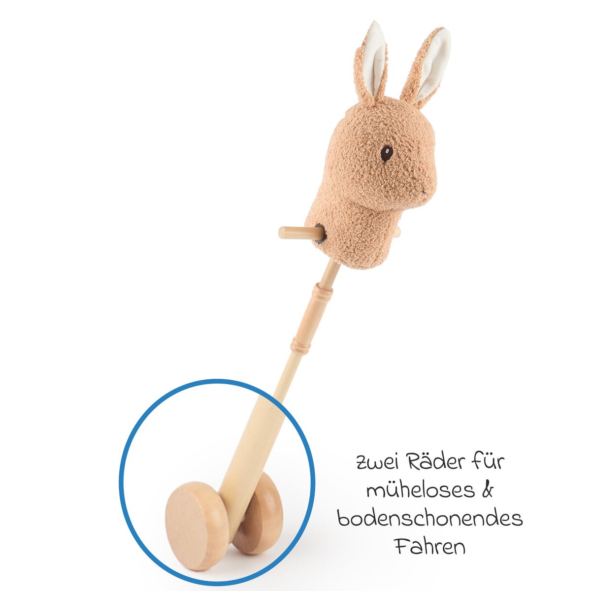 With the practical side handles, your child can hold Fine the bunny securely and steer it comfortably. The two wheels make it very easy to move around and are gentle on the floor, so it can also be played with indoors. And best of all, the Hase Fine stick can be split in the middle so that it can be stowed away compactly and taken anywhere - ideal for outings or trips.