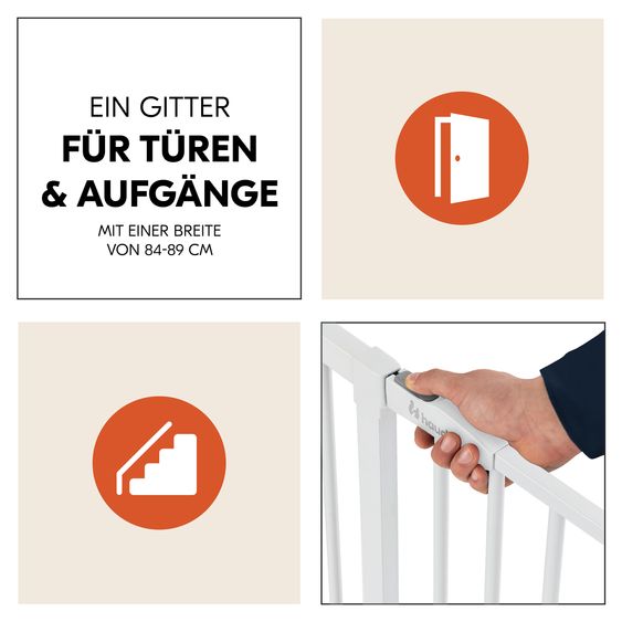 - 84 - 89 cm | door safety gate + 9 cm extension (included in the set)