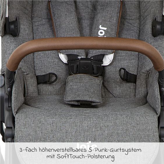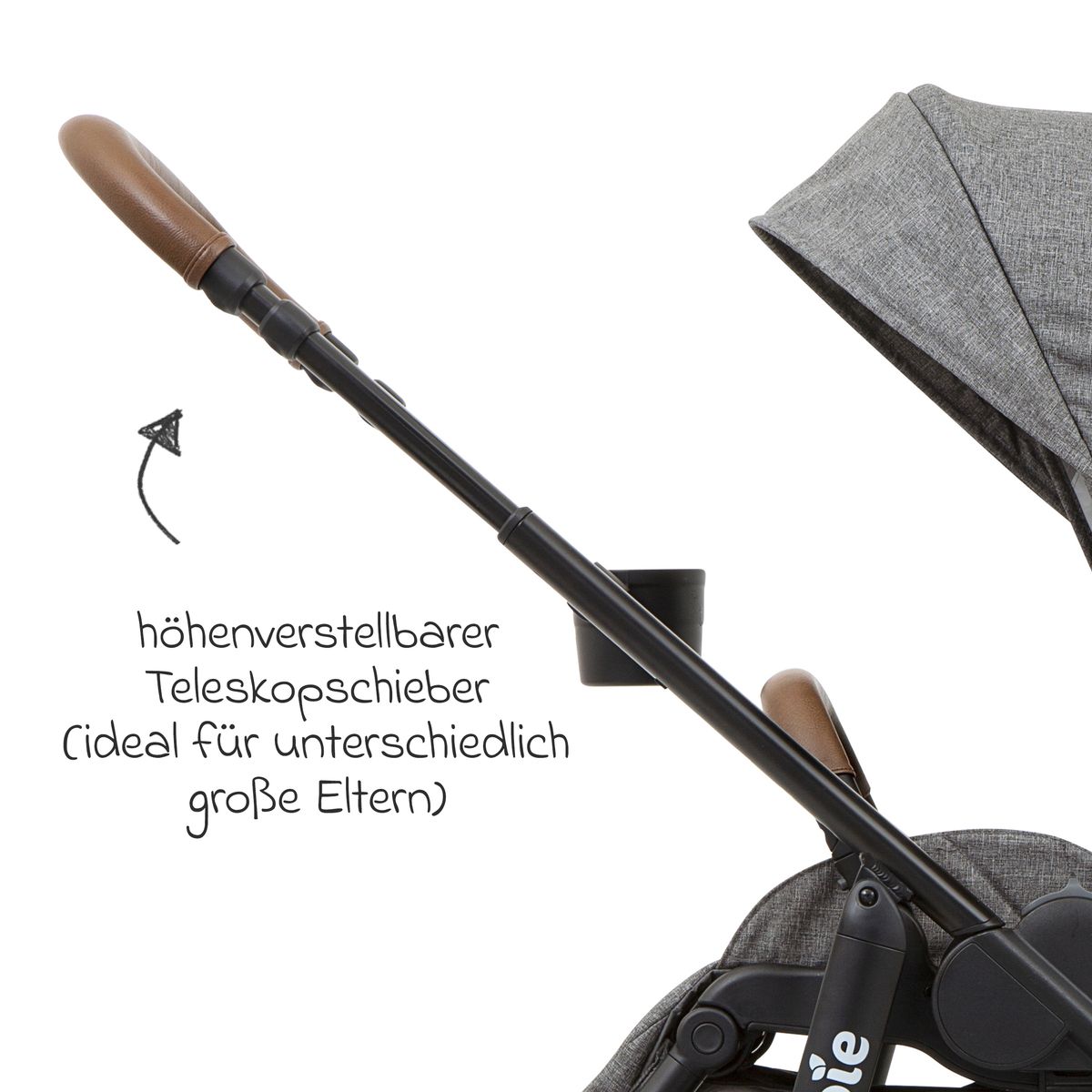 - Special features: lightweight aluminium frame, high-quality fabrics, spacious shopping basket, 4-wheel individual suspension, compact fold with one hand, Ramble XL Carrycot, i-Snug 2 Infant Car Seat, cup holder, rain cover and insect net for stroller and Infant Car Seat, adapter for Ramble XL Carrycot & Joie Infant Car Seats
