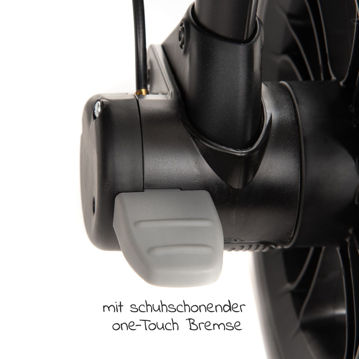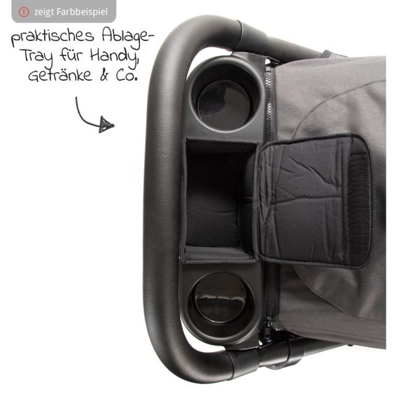 To make everyday life easier for you, the Litetrax has 4 practical storage compartments on the push handle. The spacious tray offers space for drinks, cell phone, baby's pacifier and other utensils. You can store purchases and larger items in the spacious and easily accessible shopping basket. The leather-look slider not only looks good, but also fits comfortably in your hand. With the easy-to-use, shoe-friendly One-Touch brake, the stroller stays securely in place.