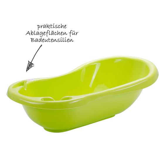In the baby bathtub Classic - Grün from KP-Family the little ones feel particularly at home. With a length of 84 cm and a width of 40 cm, the bathtub offers your baby plenty of room to splash around, but also enough armroom for you to bathe your little treasure.