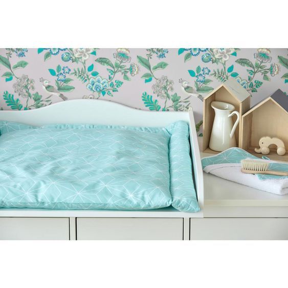 The changing mat 85 x 75 cm - with diamond contour - Mint by Kraftkids is made of pure, skin-friendly cotton on the outside. It is padded with soft polyester fleece - ideal conditions for a comfortable diaper change. So padded, your baby is changed and dressed in no time. The changing pad is machine washable at 40 °C.