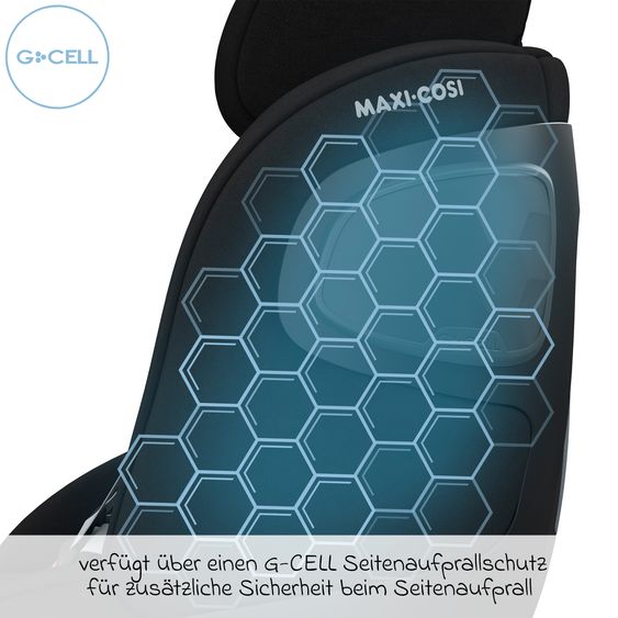 - Features: G-Cell side impact protection, comfortable padding, 9-position height-adjustable headrest, 5 seat positions with flat recline position, 5-point harness system with padding, memory foam headrest, ClimaFlow temperature regulation, Easy-in harness system, acoustic and visual indicators on the base forFlexiSpin technology, can be rotated 360° with one hand, visual display and audio signals confirm correct installation, fold-out support leg, TravelSafe rotation lock