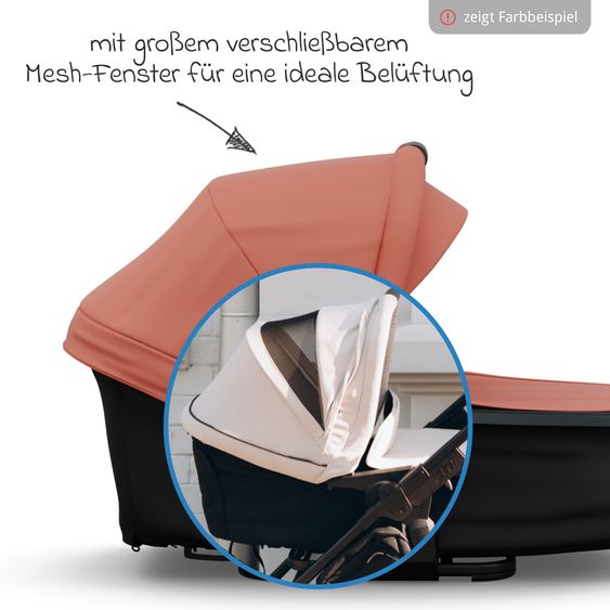 The combination unit (carrycot & seat) for Mono 3/4 & Pro from TFK grows with your child and can be used from birth to 36 months. Your newborn is safe and secure in the spacious carrycot with comfort mattress. As soon as your child can sit up independently, you can convert the carrycot into a comfortable seat with a flat reclining position. The height-adjustable head and shoulder padding provides additional support, the 5-point harness secures reliably and the extendable footrest provides extra legroom. The water-repellent canopy with UPF 50+ protects against the sun and light rain, while the closable ventilation window ensures optimum ventilation and fresh air.