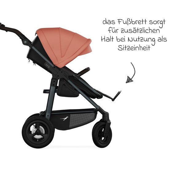 The Mono 4 baby carriage from TFK offers you a feather-light ride and maximum flexibility for everyday use. The high-quality aluminum frame with pneumatic tires guarantees maximum comfort on any surface, while the combi unit (carrycot & seat) accompanies your child safely and comfortably from the first day to approx. 36 months. The comprehensive XXL accessory pack contains everything you need to make every outing a pleasure.