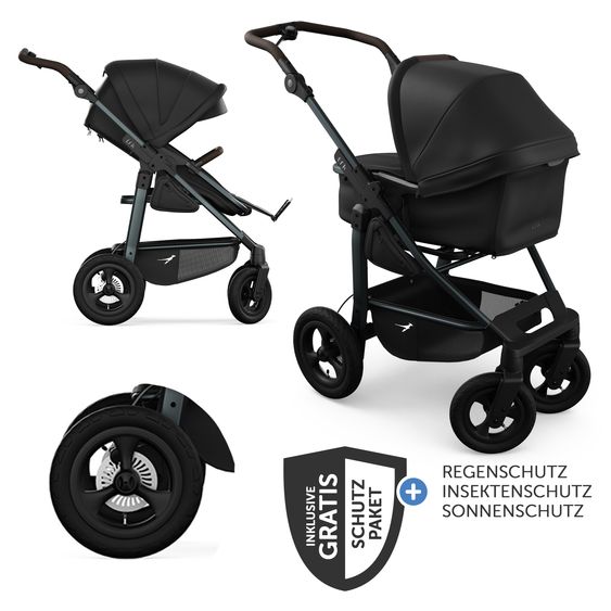 The Mono 4 baby carriage from TFK offers you a feather-light ride and maximum flexibility for everyday use. The high-quality aluminum frame with pneumatic tires guarantees maximum comfort on any surface, while the combi unit (carrycot & seat) accompanies your child safely and comfortably from the first day to approx. 36 months. The comprehensive XXL accessory pack contains everything you need to make every outing a pleasure.