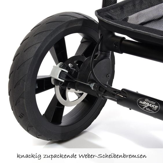Thanks to the suspended rear axle and the large pneumatic wheels, your little nap will certainly not be interrupted even during fast rides. In addition, the spine and head are protected from shocks and vibrations when your children are sitting again.