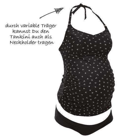 Goditi l'estate al massimo con il pancione con il tankini Lelepa nero a pois bianchi di Anita. Il top è arricciato ai lati per lasciare spazio al tuo pancione in crescita. Il busto è piacevolmente foderato per garantire il massimo comfort. Le bretelle possono essere sganciate e legate al collo come un collo alto. A partire dalla taglia 42, un supporto aggiuntivo per il seno e spalline più larghe garantiscono ancora più comfort e sicurezza. Il pantalone hipster nero si adatta in modo elegante e confortevole ai tuoi fianchi. Il motivo alla moda del top e il colore tenue sono particolarmente chic.