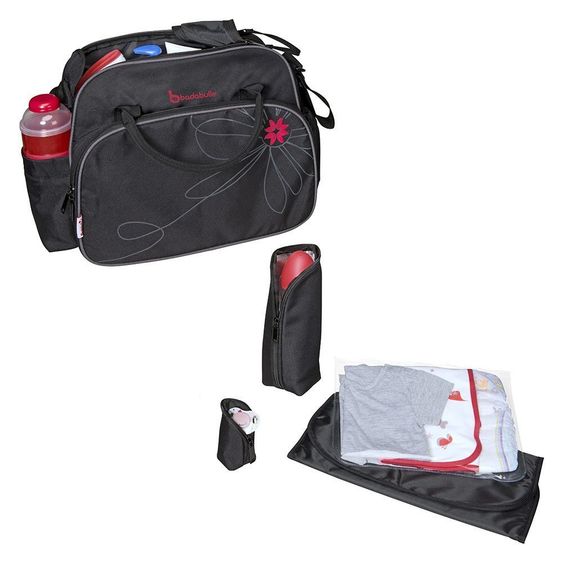 La leggera borsa fasciatoio Vintage in nero rosa di Badabulle offre spazio per tutto il necessario per il tuo bambino in viaggio. Gli accessori della borsa sportiva includono un fasciatoio, un contenitore per biberon isolati, una borsa per ciucci e una borsa trasparente per i vestiti o le salviette umidificate. Grazie all'attacco per carrozzina integrato, la borsa può essere agganciata a un passeggino o a una carrozzina.