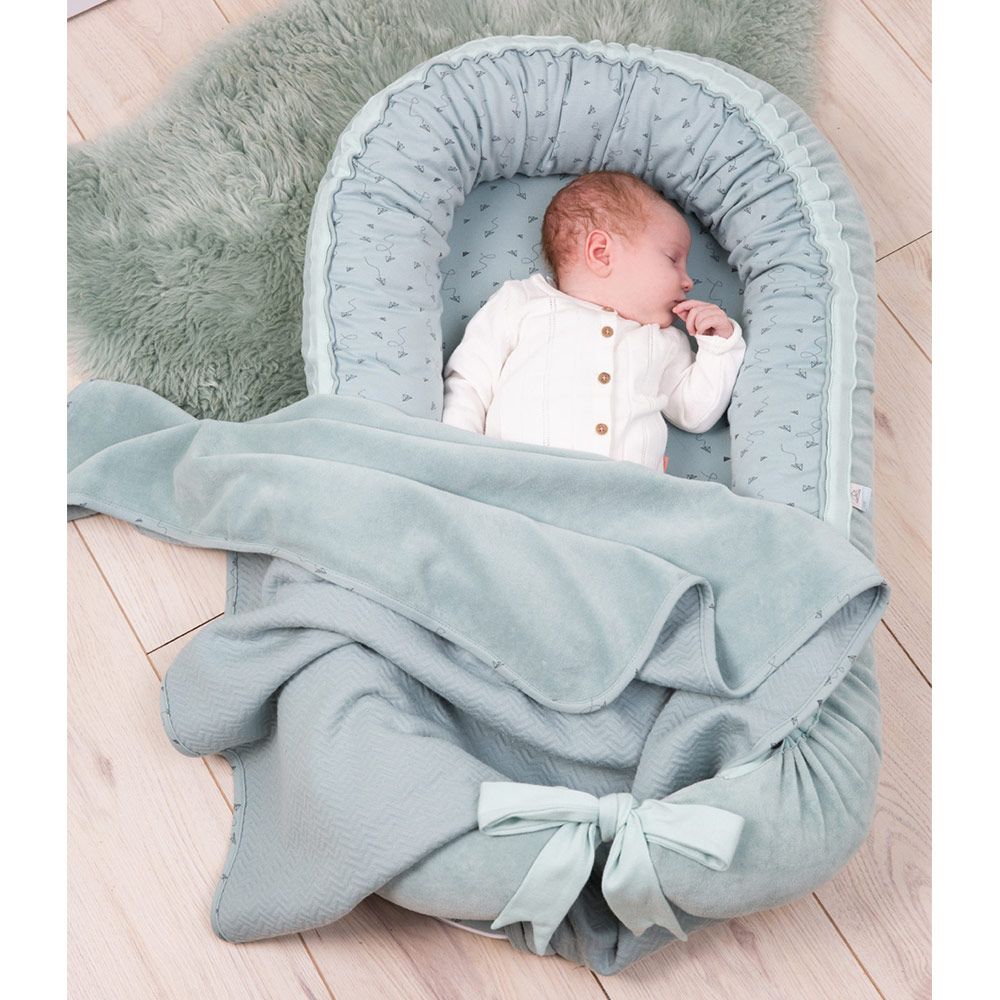 La morbida copertina in 100% cotone è particolarmente confortevole per la pelle delicata del bambino e ti invita a rilassarti. Il nido è ideale come luogo accogliente per dormire, riposare o giocare. Per il lavaggio, il materasso può essere facilmente rimosso grazie alla pratica zip. L'accogliente nido di coccole è completato da un simpatico disegno a fantasia in un delicato colore verde menta.