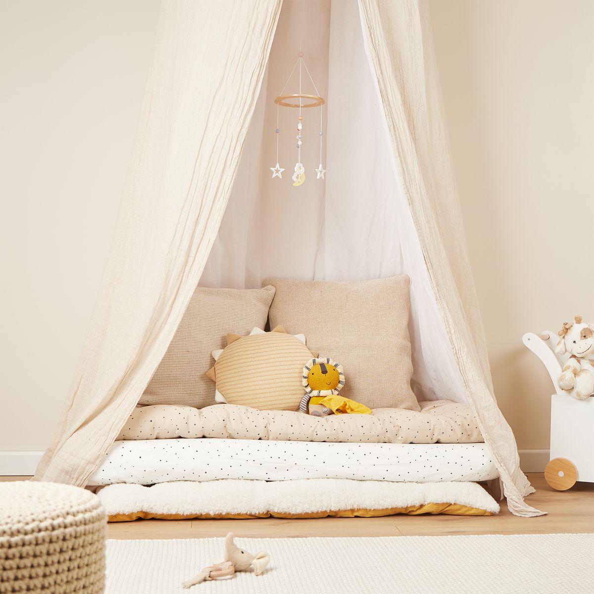 Come aiuto per il sonno o come calmante, il cielo stellato mobile Bieco è un'incantevole attrazione nella stanza del bambino. I bellissimi elementi in legno con luna, stelle e nuvole dai colori tenui ti invitano a guardare e a rilassarti. Posizionato sopra il fasciatoio, il cellulare è una piacevole distrazione. Sopra il lettino, serve come aiuto per il sonno e accompagna il tuo piccolo dolcemente nella terra dei sogni.
