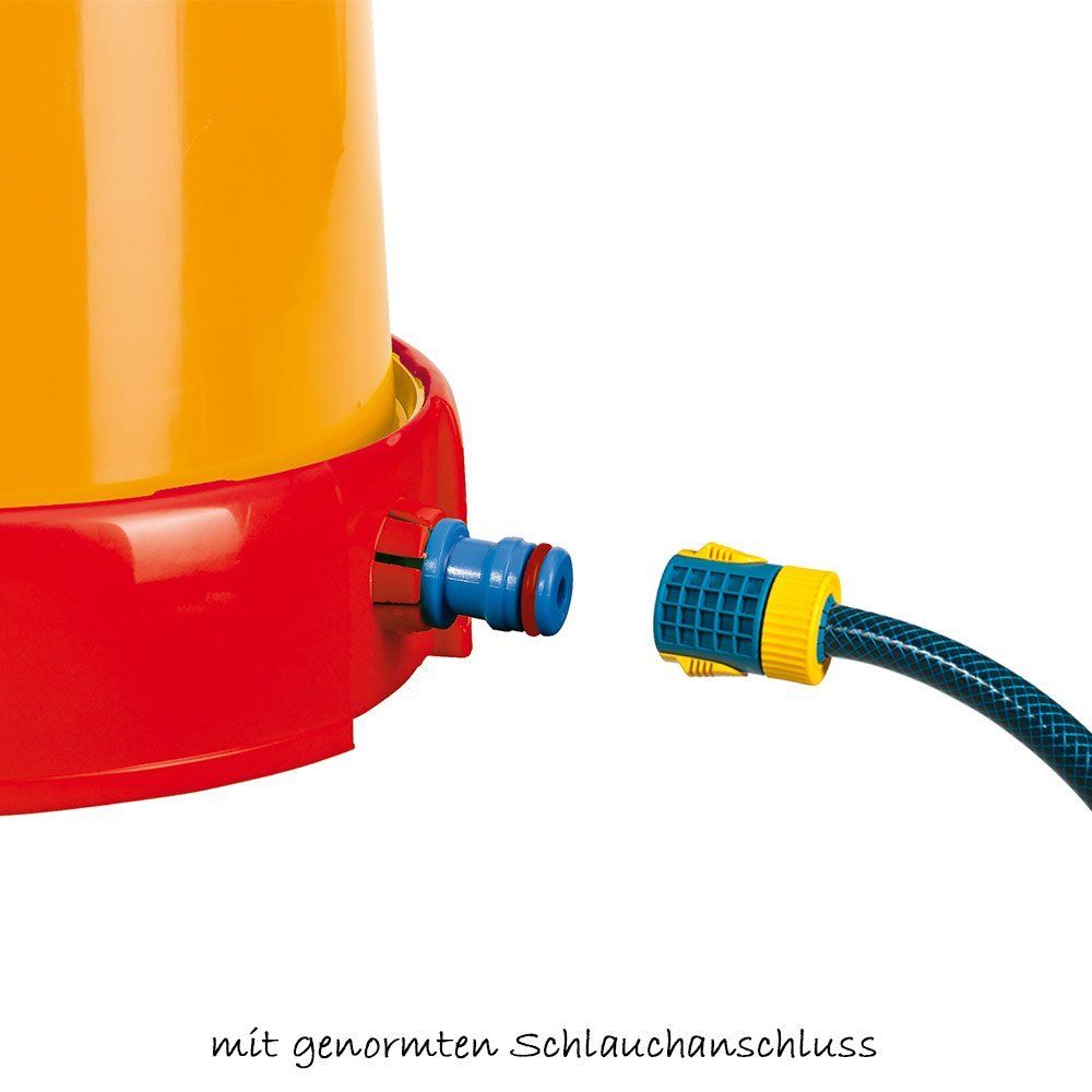 L'irrigatore Aqua Clown di BIG è divertente da usare in giardino. È dotato di un attacco standardizzato per il tubo da giardino e guadagna punti grazie al suo design allegro. L'Aqua Clown è realizzato in plastica di alta qualità e può essere adattato individualmente alla rispettiva superficie. Il getto d'acqua dell'ugello colpisce sempre il cappello blu del clown e lo solleva in aria. A seconda della pressione dell'acqua, il cappello si alza fino a quattro metri e ruota. In questo modo si crea una meravigliosa doccia d'acqua che offre un piacevole refrigerio, soprattutto con le calde temperature estive.