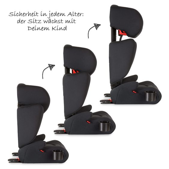 Cresce con te. Il Bodyguard PRO cresce con il bambino perché può essere regolato in base alle sue dimensioni. Tutte le regolazioni vengono effettuate con una sola mano per rendere il viaggio il più confortevole possibile per il tuo bambino. Il poggiatesta può essere regolato a 7 altezze diverse. Le ali laterali si regolano gradualmente in larghezza. La guida del nastro è stata ottimizzata per il nastro diagonale. In questo modo la cintura rimane sempre al suo posto e non sul collo del bambino.