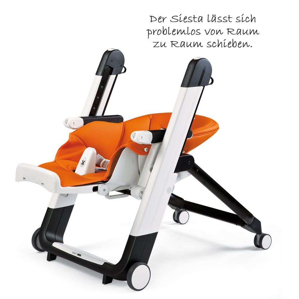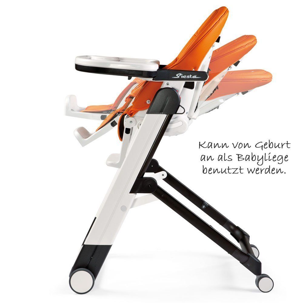 Il seggiolone Siesta - Arancia di Peg Perego può essere utilizzato come comoda seduta fino all'età di 3 anni. Poiché può essere spostato in una comoda posizione reclinabile, può già essere utilizzato come comodo lettino per i bambini più piccoli.