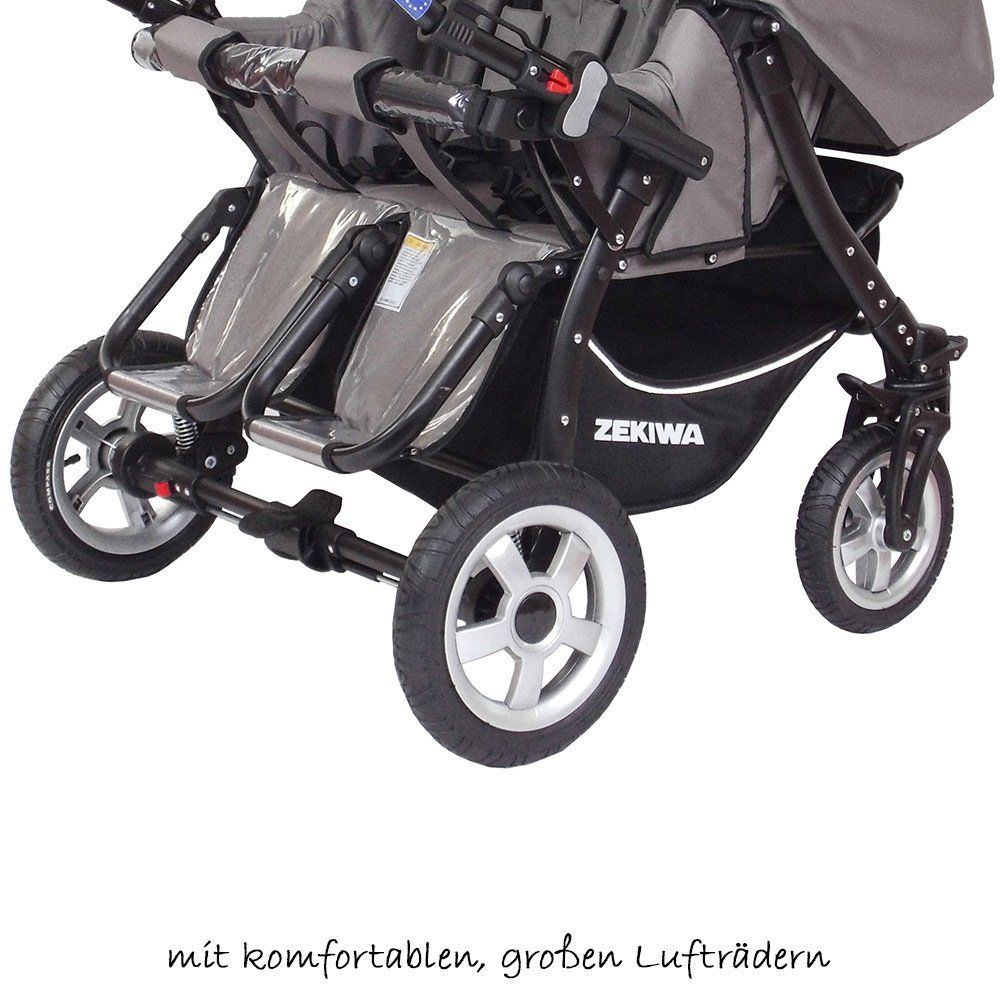 Il passeggino Duett - Sand per fratelli e gemelli di Zekiwa è ideale per i tuoi gemelli e può essere utilizzato fin dalla nascita. Grazie alle aree di riposo separate, puoi adattare il passeggino alle esigenze dei tuoi bambini. Le 4 ruote pneumatiche garantiscono una guida confortevole su quasi tutte le superfici. Il modello Duett ha una maniglia regolabile in altezza in finta pelle di alta qualità. In questo modo avrai la garanzia di avere la schiena a posto anche in viaggio.