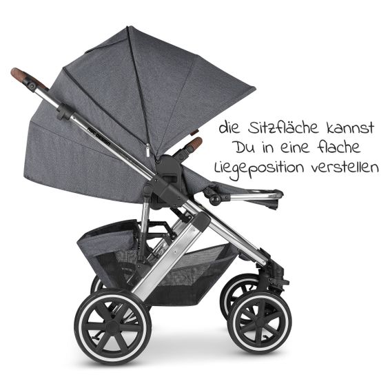 Der Kombi-Kinderwagen Salsa 4 Air - inkl. Babywanne & Sportsitz - Diamond Edition - Asphalt von ABC Design ist ein perfekt ausgestatteter Allrounder auf 4 Rädern. Mit komfortabler Babywanne und umsetzbarer Sitzeinheit begleitet er Dein Kleines von der Geburt bis ins Vorschulalter. Seine Lufträder und die integrierte Federung machen ihn zu einem flexiblen Gefährt, das sich auf jedem Untergrund hervorragend fahren lässt und dabei einen wunderbaren Sitzkomfort für Dein Kleines bietet.