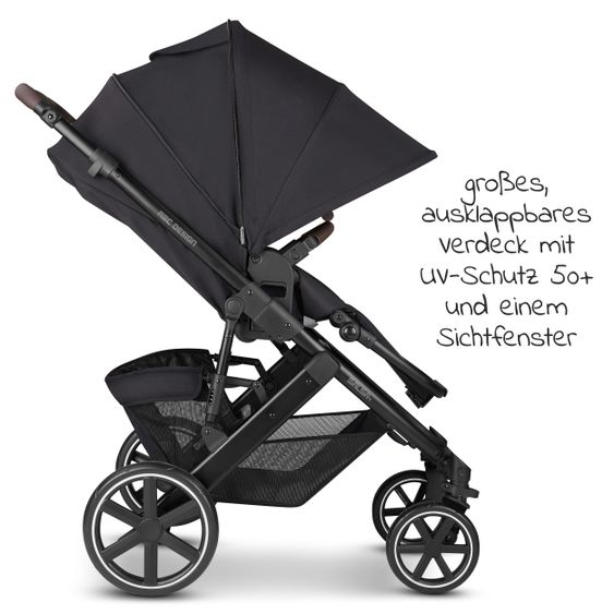 - Besonderheiten: faltbare Babywanne mit zwei großen Lüftungsfenstern, sehr geräumiger Einkaufskorb, Blickrichtung wählbar, Schieber-Griff & Schutzbügel in edler Lederoptik, viel Beinfreiheit beim Schieben, kompakt faltbar auch mit Sportwagenaufsatz