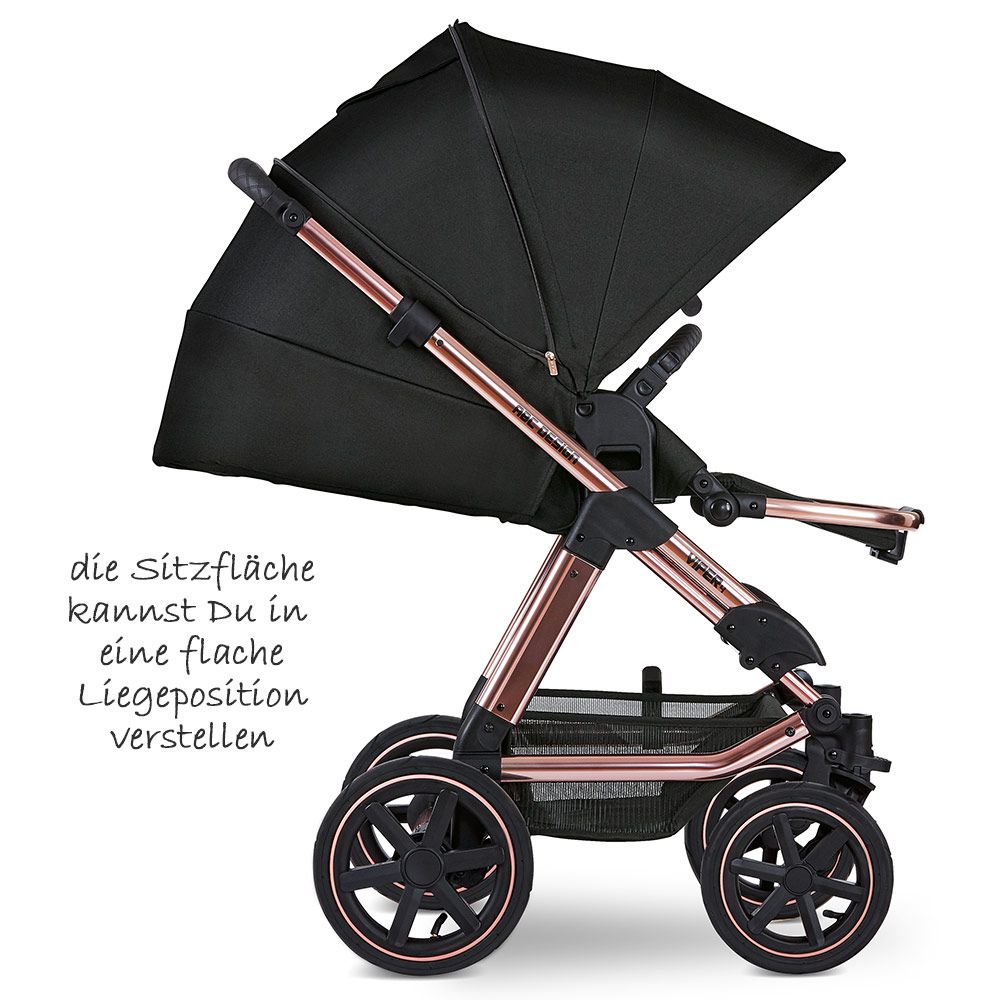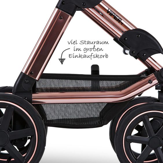 Im Kombi-Kinderwagen Viper 4 - Diamond Special Edition inkl. XXL Zubehörpaket - Rose Gold von ABC Design ist Dein Kleines mit viel Komfort unterwegs. Dank seiner großen Lufträder mit tiefem Profil für extra Grip, begleitet er Dich spielend und sicher über Stock und Stein. Damit ist der Viper 4 die ideale Wahl, wenn Du gerne in der Natur unterwegs bist. Die geräumige Babywanne sorgt bereits ab der Geburt für Geborgenheit. Der funktionale Sportwagenaufsatz begleitet Euch bis ins Kleinkindalter.