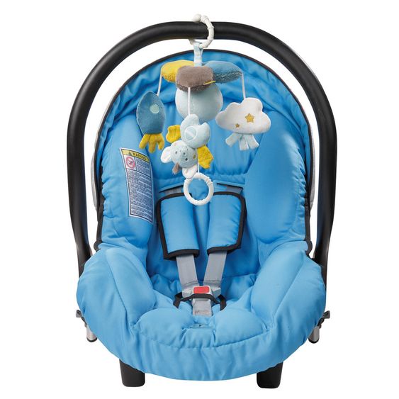 Die Rakete ist eine Rassel, die Wolke ist mit Raschelpapier ausgestattet und die Fledermaus mit einer Quietsche. Alle Figuren laden somit zum entdeckt werden ein. Sind sie auf die dazu gehörende Spieluhr aufgesetzt, regen die wackelnden Figuren die Wahrnehmung Deines kleinen Schatzes an und laden zum Lauschen, Beobachten und Staunen ein. Das Spielwerk lässt sich am Greifring superleicht aufziehen. Daraufhin erklingt dann eine beliebte Schlafliedmelodie in angenehmer Lautstärke. Dein Kleines wird beruhigt, getröstet und sanft in den Schlaf gewogen. Mit der elastischen Halterung in Form des Buchstaben C wird das Mini-Musik-Mobile an Babyschale, Kinderwagen, Laufgitter und Bettchen befestigt. Es sorgt also nicht nur zuhause für blendende Unterhaltung sondern auch unterwegs.