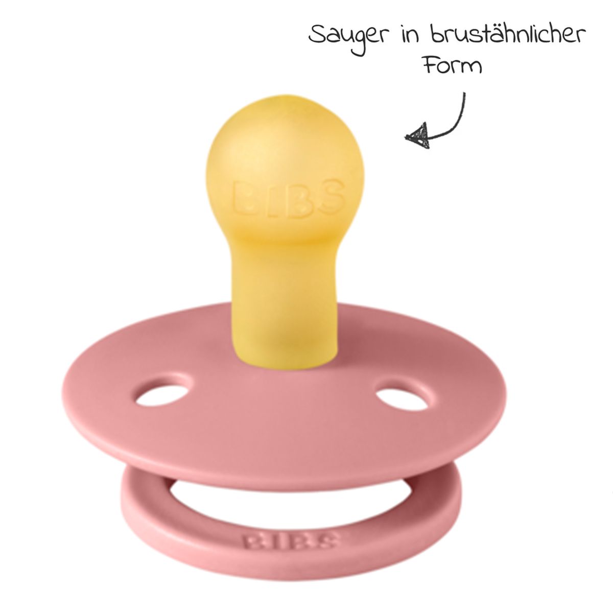 Das 2-teilige Schnuller-Set - Colour - Gr. 0-6 M von BIBS besteht aus reinem Naturkautschuk - frei von BPA, PVC & Phthalaten. Das samtweiche, flexible und hautschonende Material vermittelt Deinem kleinen Spatz ein natürliches Sauggefühl. Durch die kirschförmige Form und das runde Schild ahmt der Schnuller die Form der Mutterbrust auf natürliche Weise nach und ist besonders kiefergerecht.