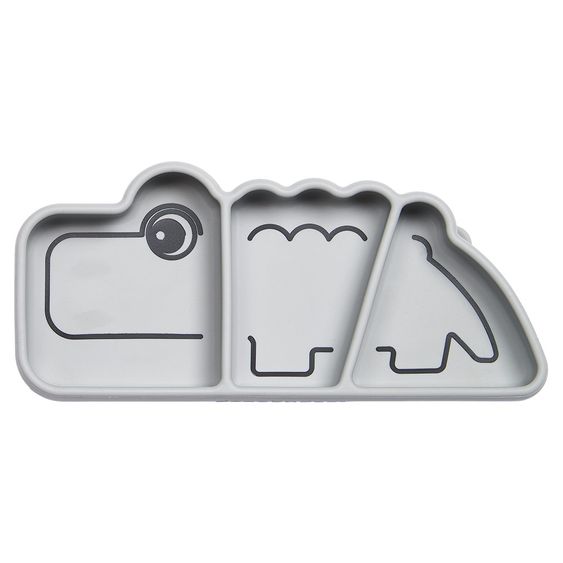 2 Done by Deer Silikon-Esslern-Teller mit Saugfuß - Stick & Stay - Croco in Grau