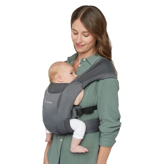 Tuch oder Trage? Mit der Ergobaby Babytrage Embrace Soft Air Mesh für Neugeborene - Washed Black kommt die beliebte Neugeborenentrage jetzt in leichtem, belüftetem Nadelpunkt-Feinstrick mit Soft Air Mesh an der Schulter und am Rücken. Das einzigartige Nadelpunkt-Feinstrick schmiegt sich an Dein Baby an und unterstütz durch seine Formstabilität die ergonomische Anhock-Spreiz-Haltung Deines Babys. Das Soft Air Mesh und das belüftete Rückenteil bieten Atmungsaktivität, wo es besonders wichtig ist. Das atmungsaktive Material leitet den Schweiß von Dir und Deinem Baby ab und trocknet schnell, damit Du dich rundum wohlfühlst und besonders im Sommer kühl und trocken bleibst. Die Embrace bietet Dir 3 unterschiedliche Bauchtrageweisen, die mit Deinem Liebling mitwachsen: 2 mit Blick zu Dir für das wachsende Baby (Neugeborenen- und Babymodus) und eine mit Blick nach vorne für ältere Babys. Zudem ist die Babytrage ultraleicht und lässt sich kompakt zusammenrollen.