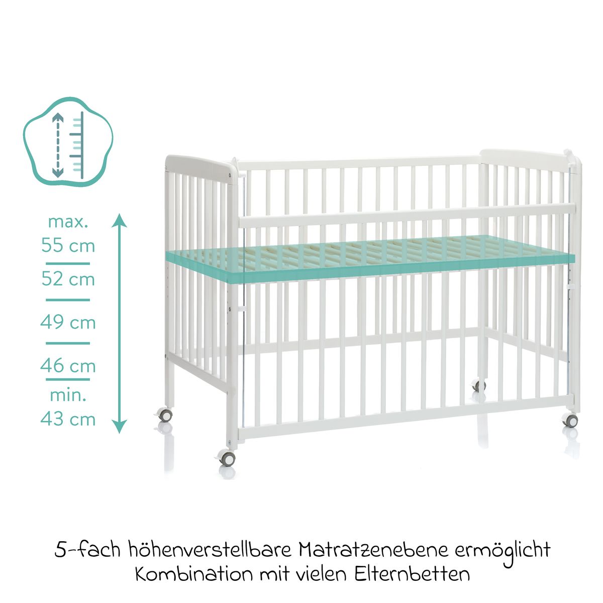 • ermöglicht Nähe & Sicherheit durch ein herablassbares Seitenteil für eine nahtlose Verbindung zwischen Eltern- & Babybett