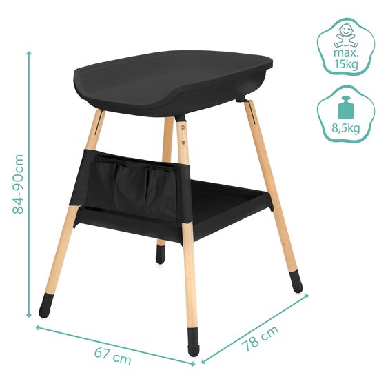 Der höhenverstellbare Wickeltisch von Fillikid vereint elegantes Design in Holzoptik mit durchdachter Funktionalität. Ausziehbare Holzbeine ermöglichen Dir eine ergonomische Arbeitshöhe – vom ersten Tag an bis ins Kleinkindalter. So schonst Du Rücken und Gelenke bei jedem Windelwechsel.
