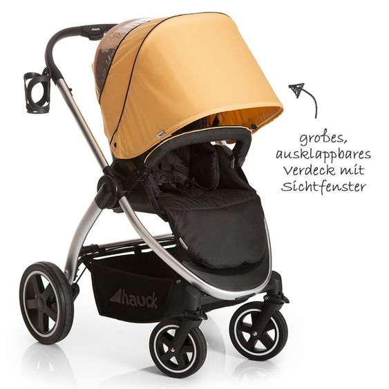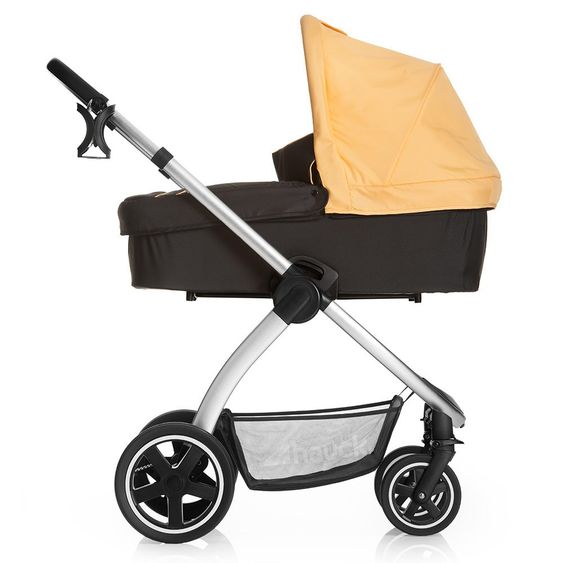 Mit dem Kinderwagen-Set Priya Trioset - Caviar Banana von Hauck ist Ihr Baby bis ins Kleinkindalter hinein bestens versorgt. Zum Set gehören neben dem leichten Aluminium-Gestell ein Shopperwagen mit Beindecke und Getränkehalter; eine komfortable Babywanne sowie die Babyschale Zero Plus. Mit seinen Rädern aus geschäumtem Kunststoff macht Priya auch auf jedem Gelände eine gute Figur. Mit ihm kommen Sie in engen Supermarkt-Gängen genauso gut zurecht wie bei Spaziergängen auf asphaltierten Wegen.