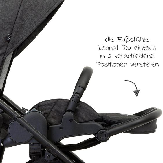 Damit Du beim Schieben immer eine bequeme und rückenfreundliche Haltung einnimmst, kannst Du den Lederimitat- Schieber in der Höhe verstellen und ganz leicht Deiner persönlichen Körpergröße anpassen. Die umsetzbare Sportwagensitzeinheit - so kann Dein Kind zu Dir schauen oder in Fahrtrichtung geschoben werden- lässt sich über die 4-fach verstellbare Rückenlehne und eine 2-fach verstellbare Fußstütze mit einer Hand bis in eine bequeme Liegeposition verstellen. Das große ausklappbare Verdeck ist mit UV-Schutz 50+ ausgestattet. Für warme Tage sind ein Belüftungsfenster und seitliche Belüftungsöffnungen aus Mesh-Gewebe integriert um einen Hitzestau zu vermeiden. Eine sichere Fahrt garantieren der 5-Punkt-Gurt mit SoftTouch-Polsterung und der abnehmbare, aufklappbare Frontbügel mit einem Bezug aus Lederimitat\.