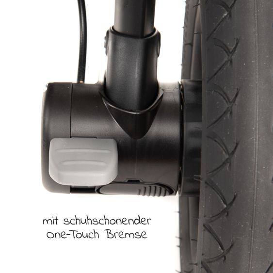 - Besonderheiten: Ablage mit Getränkehalter am Schiebegriff, Einhand-Faltmechanismus