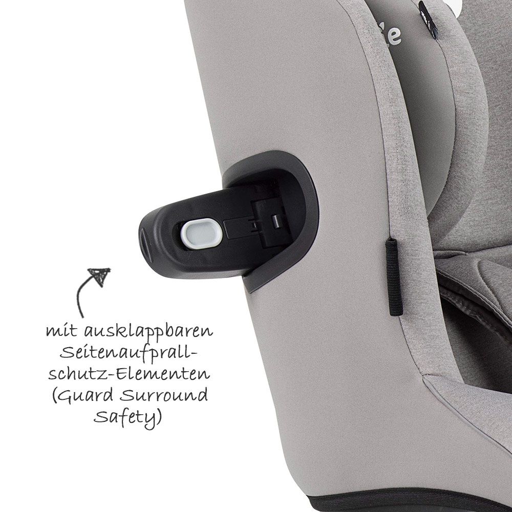 - Besonderheiten: beidseitig ausklappbare Seitenaufprallschutzelemente im Kopfbereich, 360° Rotation des Sitzes für leichten Ein- und Ausstieg