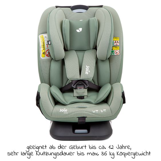 Der Reboarder-Kindersitz Verso - Laurel von Joie ist ein Autositz für die Gruppe 0+/1/2/3 und kann von Deinem Kind ab der Geburt bis zum Ende der Kindersitzpflicht benutzt werden. Du brauchst also keinen weiteren Kindersitz oder eine Babyschale. Der Verso wächst nicht nur in der Länge, sondern auch in der Breite mit und bietet so auch Fast-Teenagern mit 12 Jahren noch genügend Platz. Viele Einstellungsmöglichkeiten und ein integriertes Luftzirkulationssystem sorgen dafür, dass Dein Kind immer ein bequemes und angenehmes Sitzklima hat. Befestigt wird der Verso mit dem Fahrzeuggurt und sobald er vorwärtsgerichtet verwendet wird, kann er zusätzlich mit Isofix verankert werden.