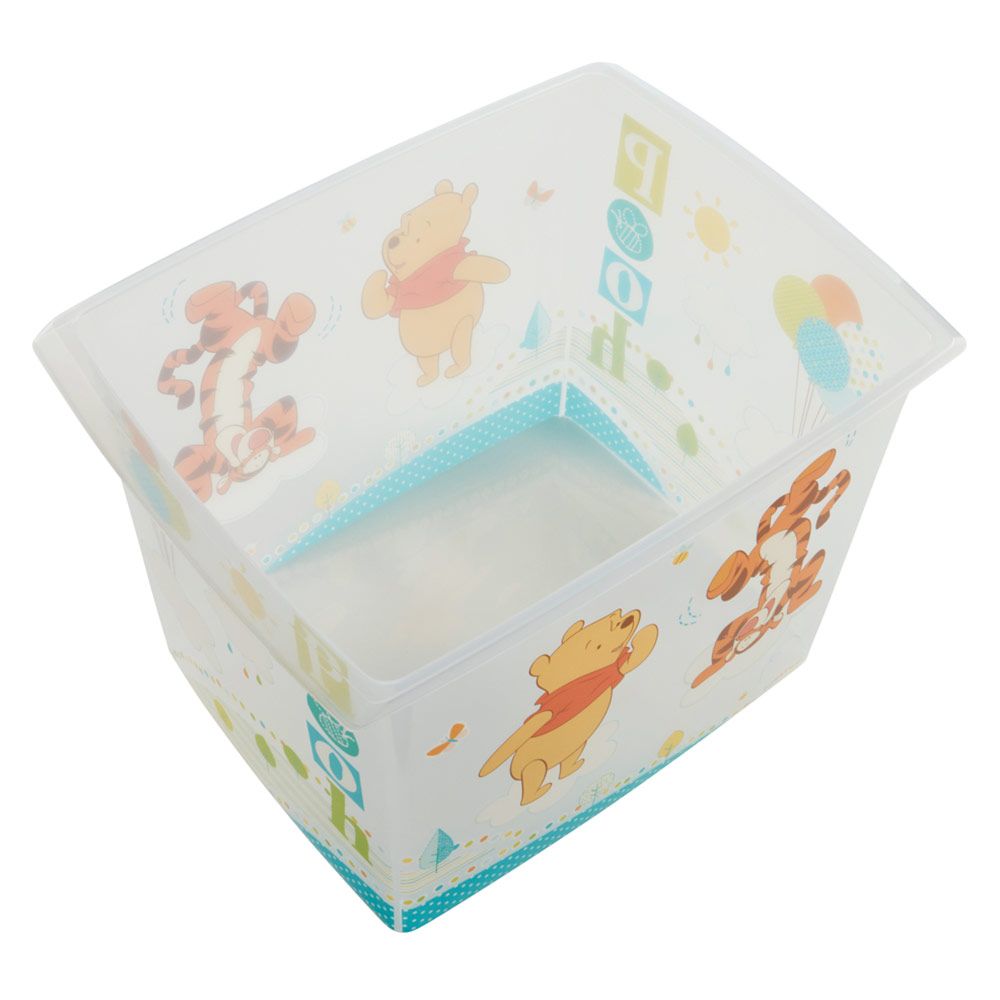 In dieser praktischen Aufbewahrungs-Box Filip im Winnie-Pooh-Design von keeeper können Baby-Utensilien wie Spielsachen, Stifte u.v.m. verstaut werden. Der Kunststoff ist besonders robust und wird Dich lange im Alltag begleiten. Die Box ist stapelbar und kommt mit einem Deckel und Tragegriffen zu Dir nach Hause. Das bunte Design mit Winnie Pooh ist witzig und kindgerecht gestaltet und wird auch Deinem Schatz gefallen.