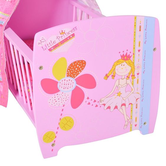 Das Puppenhimmelbett My Little Princess von Knorrtoys sorgt für süße Träume. Das pinke Bettchen mit der hübschen Bemalung im Prinzessinnen-Design ist ein toller Schlafplatz für die Puppe Ihres Kindes. Ihr Kleines wird sie begeistert unter den romantischen Himmel legen und mit der weichen Bettdecke zudecken. Das hübsche Bett ist perfekt für liebevolle Puppenmamas und ein echter Hingucker in jeden Kinderzimmer.
