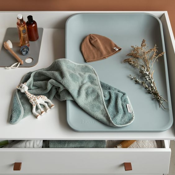 Wir kennen es alle. Wickeln ist oftmals ein Balanceakt und Dein Baby hat nicht immer Lust darauf, sich an und ausziehen zu lassen. Aber umso wohler es sich fühlt, umso entspannter wird auch der Wickelvorgang. Das praktische 3-teilige Set Leander Wickelauflage & Wickelkissen Matty™ inkl. Auflage Topper und Kapuzen-Handtuch Hoodie in Sage Green bietet dir eine besonders schöne Wickelstation. Das umfangreiche Set beinhaltet eine softe Wickelauflage, einen passenden Topper und ein Kapuzen-Badetuch in dezentem Farbton.
