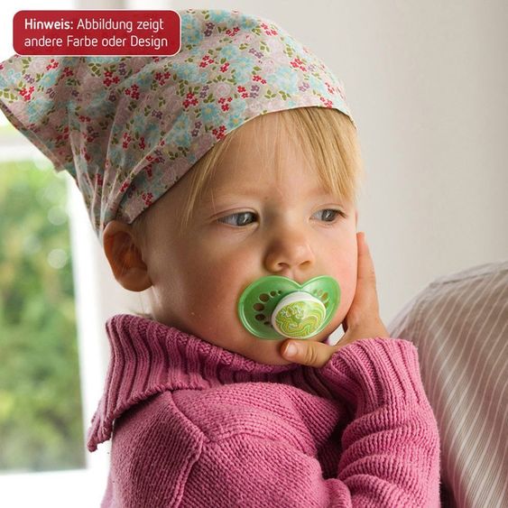 In Zeiten von Kollektionsumstellungen bei MAM kann es in Einzelfällen zu Motivabweichungen kommen. Leider haben wir darauf keinen Einfluss. Sie erhalten zwei Schnuller mit kindgerechtem Mädchen-Motiv.