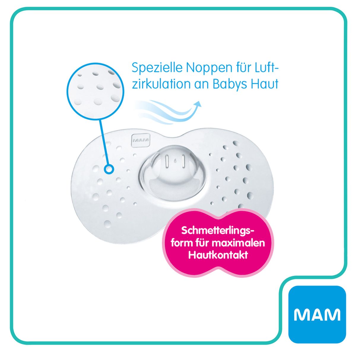 Die Stillhütchen 2er Pack mit Aufbewahrungsbox - Gr. M von Mam aus anschmiegsamen, dünnem Silikon sind praktische Helfer für viele Bereiche: bei wunden Brustwarzen, Schlupfwarzen, Hohlwarzen oder wenn Dein Kleines die richtige Saugtechnik noch nicht für sich entdeckt hat. Sie sind oval geformt und mit einer hautähnlichen, seidenweichen SkinSoft Oberfläche versehen. So fühlt sich Dein Baby beim Stillen rundum wohl.